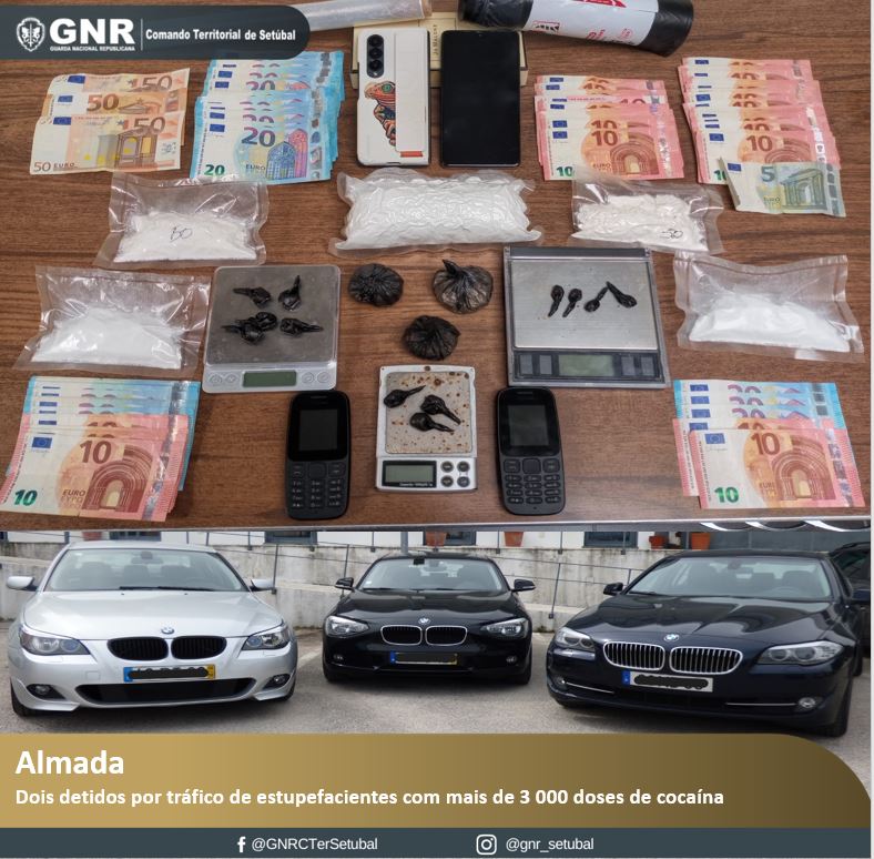 Almada, apreensão, casos de polícia, cocaína, crime, detenção, GNR, GNR Setúbal, investigação, NIC, tráfico de droga, UI