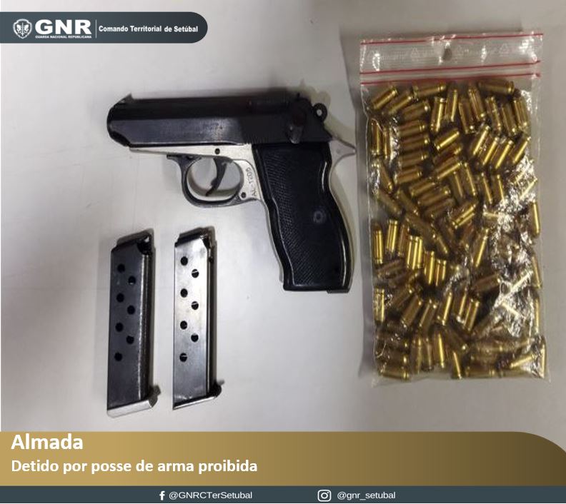 O Comando Territorial da GNR de Setúbal, através do Posto Territorial da GNR da Trafaria, deteve na madrugada do dia 26 de Janeiro, um homem de 20 anos por posse de arma proibida, na localidade do Monte da Caparica.