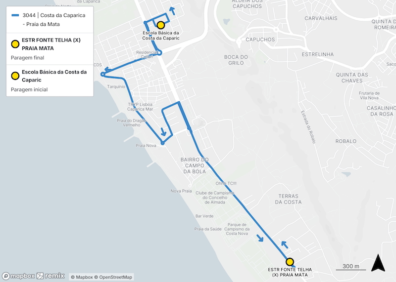 A linha 3524 que faz a ligação entre o Hospital Garcia de Orta e a Marisol passará a servir a paragem Ch Caparica R António Andrade Clínica.