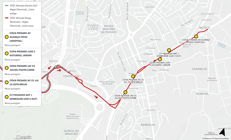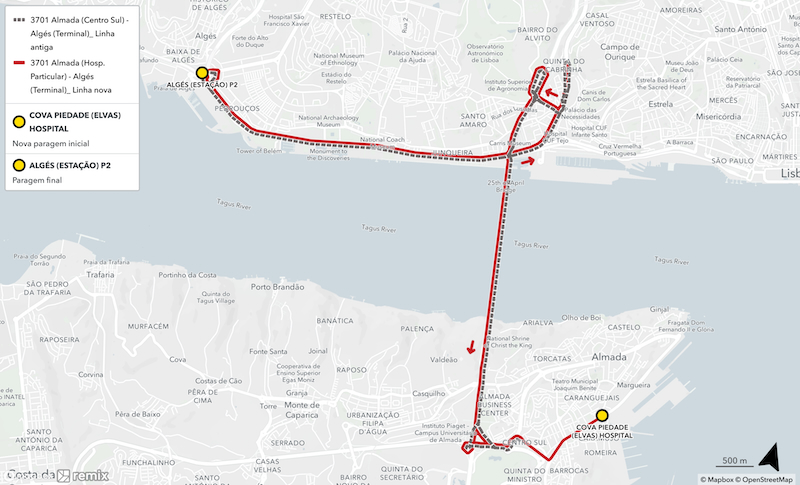 Com esta alteração, a linha passa a designar-se 3701 Almada (Hosp. Particular) – Algés (Terminal) e terá uma nova paragem inicial: Cova Piedade (Elvas) Hospital.