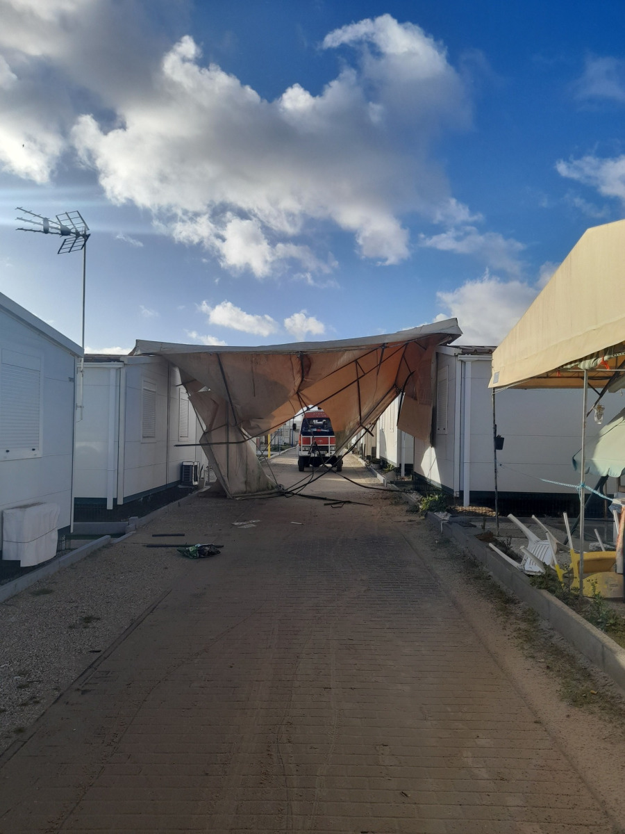 Judo Clube Pragal ficou sem parte do telhado e com 30 tatamis ensopados e sem utilização para practicar. A farmácia Holon na Costa da Caparica ficou sem a sua grande montra e o que se encontrava no seu interior foi espalhado pelo vento. Houve também estragos nos parques de campismo da Costa da Caparica, com quedas de árvores, lonas e estruturas metálicas de álveolos que se soltaram.