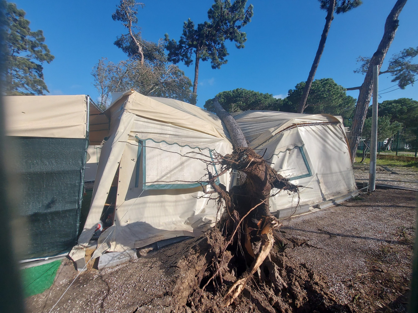 Judo Clube Pragal ficou sem parte do telhado e com 30 tatamis ensopados e sem utilização para practicar. A farmácia Holon na Costa da Caparica ficou sem a sua grande montra e o que se encontrava no seu interior foi espalhado pelo vento. Houve também estragos nos parques de campismo da Costa da Caparica, com quedas de árvores, lonas e estruturas metálicas de álveolos que se soltaram.