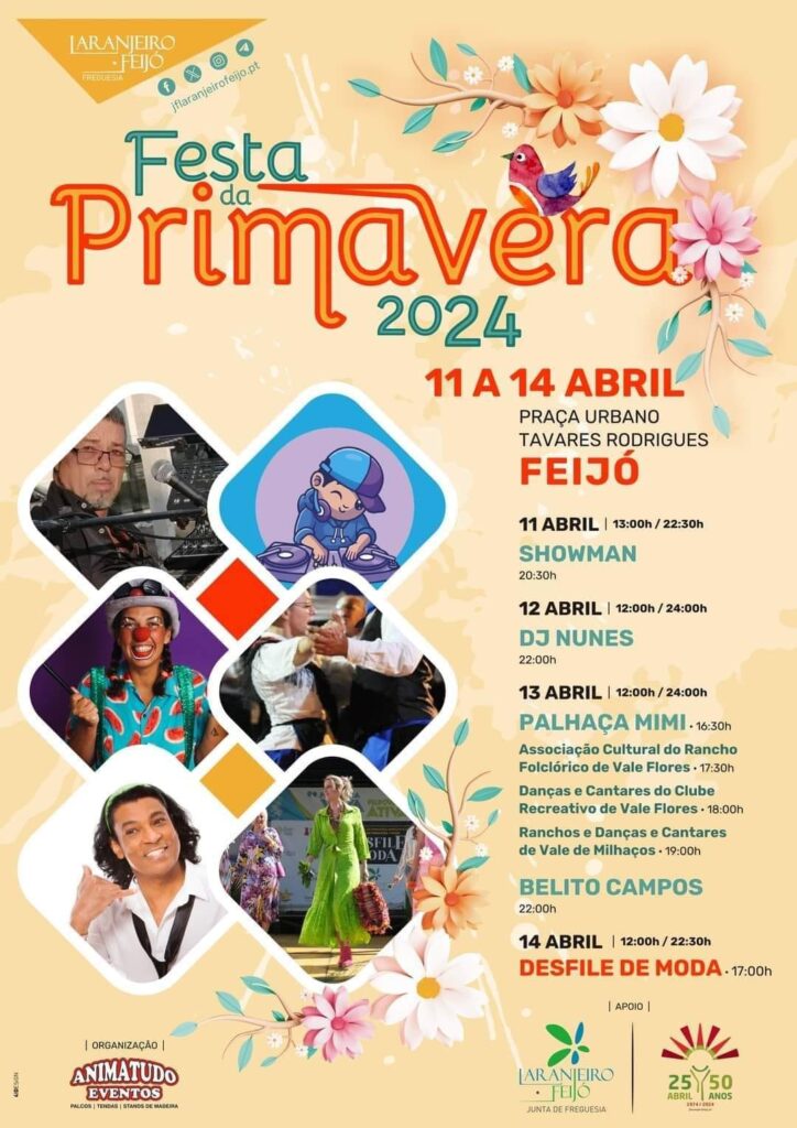 A Festa da Primavera invade a Praça Urbano Tavares Rodrigues de 11 a 14 de Abril, junto ao Edifício da Junta de Freguesia do Feijó e da Biblioteca José Saramago. Serão quatro dias para toda a família, sempre em festa com stands de artesanato local, tasquinhas de comes e bebes com gastronomia regional, animação infantil, bailes, culminando com um desfile de moda do comércio local. A entrada nesta animação primaveril, inserida nas comemorações dos 50 anos do 25 de Abril, é gratuita.