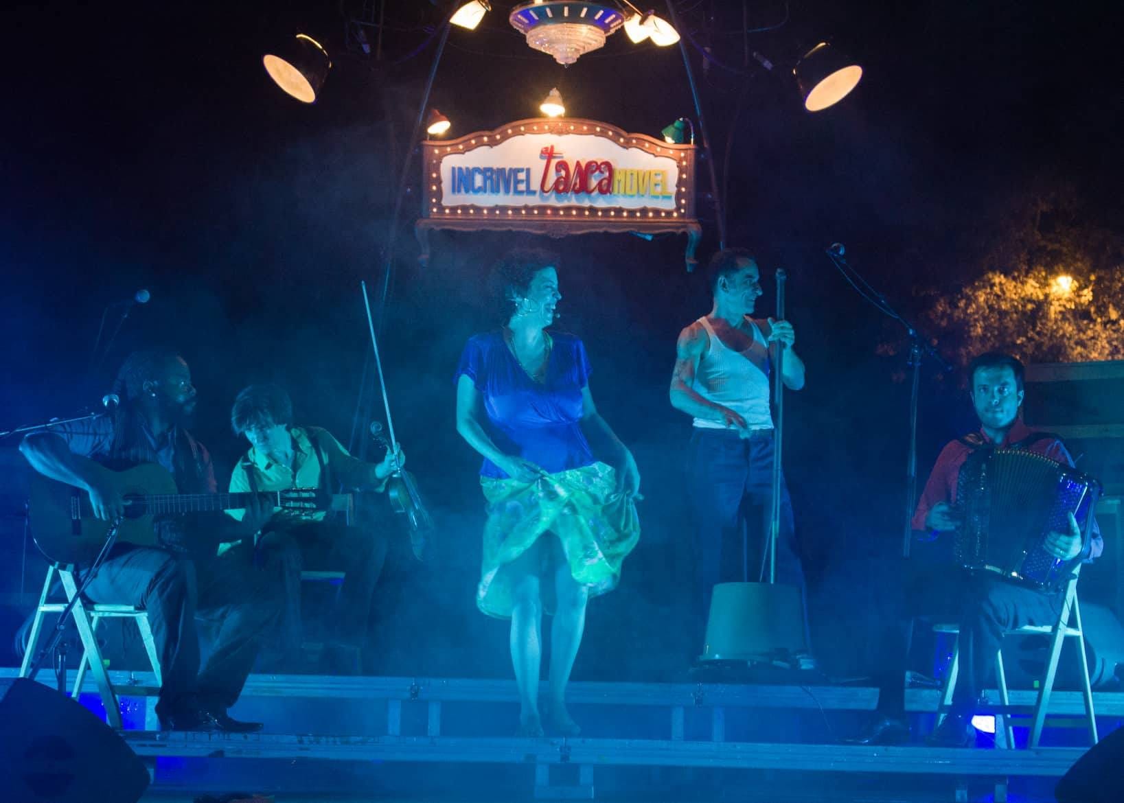 Esta Tasca-Concerto, em formato de arena, com um palco a 360°, oferece um espectáculo do outro mundo, iluminado por candeeiros vindos de lares da Margem Sul e das minas de São Domingos. Uma aventura à portuguesa que lança o conceito de Sala d’Star, explorando uma nova relação entre público e artistas, entre a sala de estar e o arraial, entre a memória e a inovação, entre arte e copos de três, entre fado e circo.