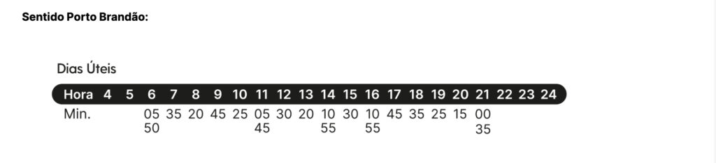 ©CM / Horários linha 3038 com partida em Porto Brandão