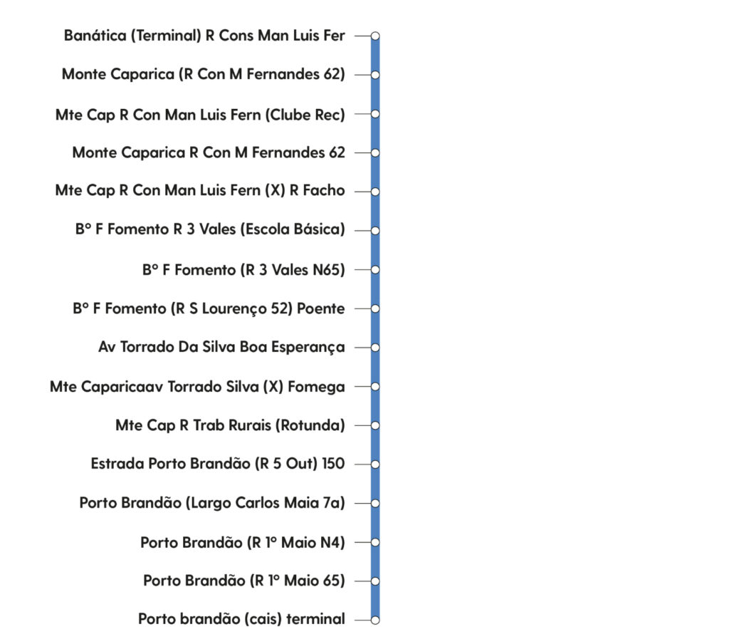 A linha 3038 terá um total de 16 paragens no seu percurso no sentido Porto Brandão, já no sentido Banática, contará com 19 paragens.