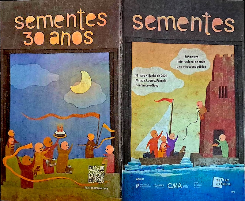 Tenho à minha frente um programa, que guardo desde 2025, da 30ª Mostra Internacional de Artes para o Pequeno Público, um festival multidisciplinar e descentralizado para a infância, juventude e público familiar. Que nome mais apropriado e belo para este festival Sementes! Pois que assim se forma público desde a infância, testando a sua imaginação, em diálogo com os variados intérpretes nacionais e internacionais de espectáculos de teatro, marionetas, manipulação de objectos, música, circo contemporâneo, teatro de rua, dança, performances, exposições e oficinas. Enfim, a arte em geral, a inclusão social, o mundo!